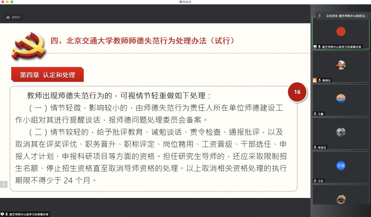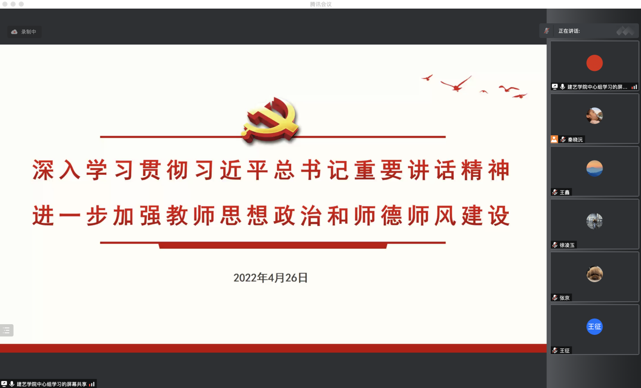 2022年4月27日,无码a片 党委围绕“深入学习贯彻习近平总书记重要讲话精神,进一步加强教师思想政治和师德师风建设”主题,召开学院党委理论中心组学习扩大会议。会议由学院党委书记秦思阳主持,学院党委理论中心组机关人员现场参会,各系系主任、党支部书记线上参加会议。