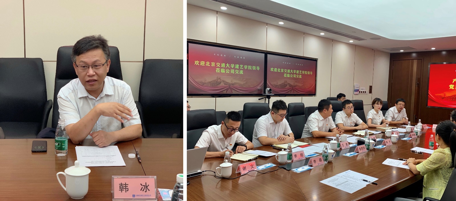 韩冰从学院专业及学科发展,科研项目等方面进行系统的介绍,他表示学院近年来积极响应国家号召,在城市更新,绿建、乡村建设等研究和实践领域均取得丰硕成果。希望双方以产学研合作和党建共建为基础,密切联系,不断加深人才培养及业务领域合作。姜威详细介绍了公司主营业务板块、“1+2+3”人才培养模式、校园招聘等情况,希望双方共同打造“党建促共建,共建促合作,合作促发展”的合作模式。与会人员就党团工作模式创新,双方人才培养,学生实习就业等方面进行交流探讨。