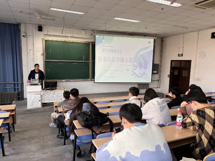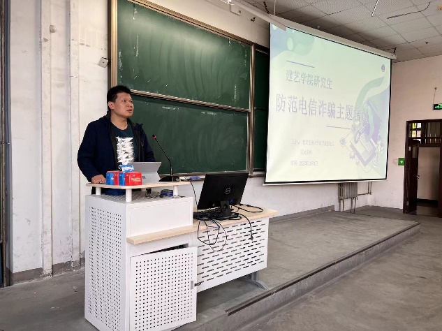 联合保卫处于逸夫楼303教室举办防范电信诈骗主题培训会,学校保卫处副处长吴斌老师做专题培训,学院全部在校研究生参加,本次培训由学院研究生辅导员张帅老师主持。