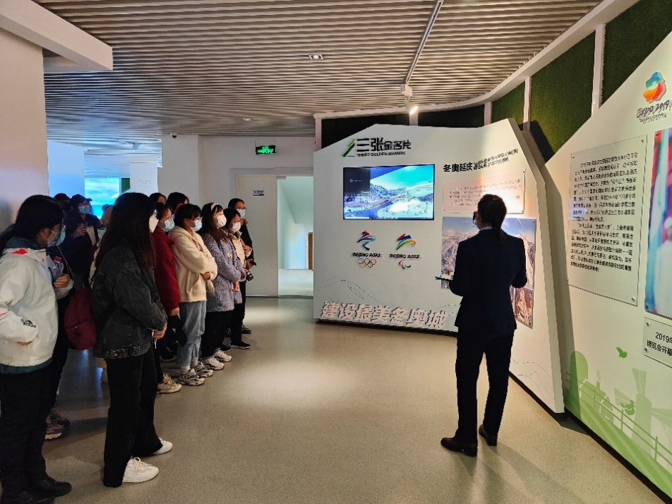“延庆是属于未来的”的标语,表达了党中央对延庆的肯定和希冀,也是延庆区规划展览馆向参观者传达的核心理念。展览馆以城市变迁为切入、以规划引领为主线、以绿色引领为抓手,系统地展示了延庆城乡建设的过去、现在和未来。在讲解员的带领下,同学们不仅对延庆的城乡规划建设新成就有了进一步的了解,也更切实感受到了规划对城市发展产生的重要影响。