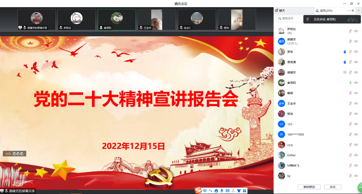 宣讲报告会后,秦思阳在总结中强调党的二十大提出的一系列新思路、新战略、新举措绘就了新征程的宏伟画卷,奏响了民族复兴的激越交响,号召全体同志更加紧密地团结在以习近平同志为核心的党中央周围,高举中国特色社会主义伟大旗帜,全面贯彻新时代中国特色社会主义思想,弘扬伟大建党精神,自信自强、守正创新,踔厉奋发、勇毅前行,为全面建设社会主义现代化国家、全面推进中华民族伟大复兴而团结奋斗。