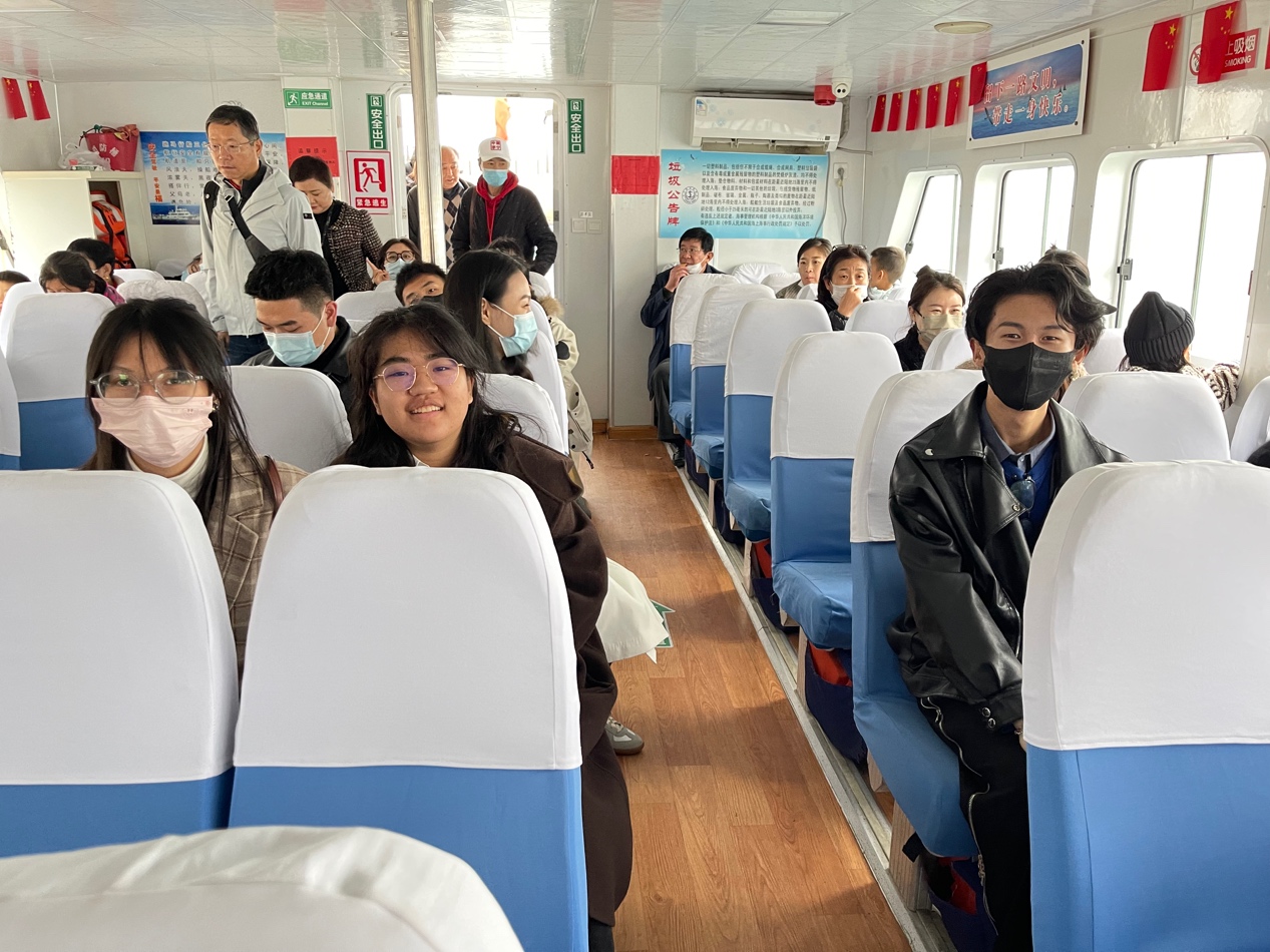 首先,大家在鸡鸣岛售票厅研究了几何建筑设计与空间设计带给游客的感受。然后,老师和同学们乘船前往鸡鸣岛。