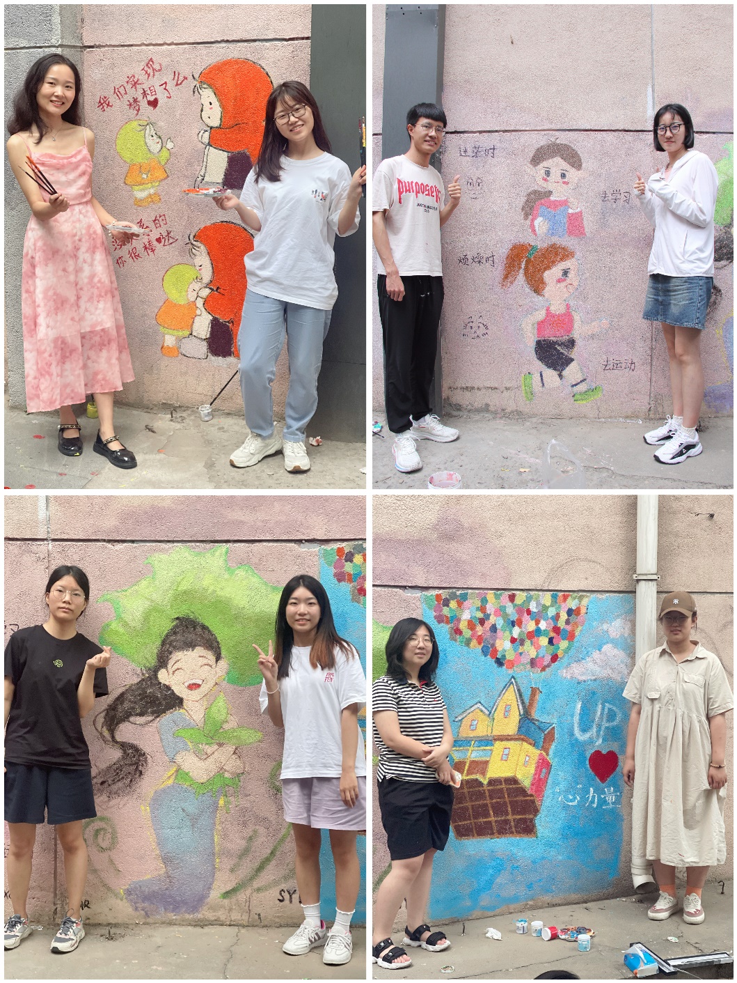 计算机学院毕业研究生王鑫参加完活动表示:“画墙绘真是一次美好的体验!勾勒、调色、上色、调整的过程都很治愈,最后看着它完成真是满满的成就感!毕业前来体验对自己更意义重大,感谢学校送给自己的离校礼物。” 马克思主义学院李晓岑表示:很开心能够通过参加本次活动近距离感受墙绘的魅力,这是一次愉快且有意义的全新体验。我既学习到了绘画知识,又放松了精神。感谢老师和同学们的全程陪伴与指导。