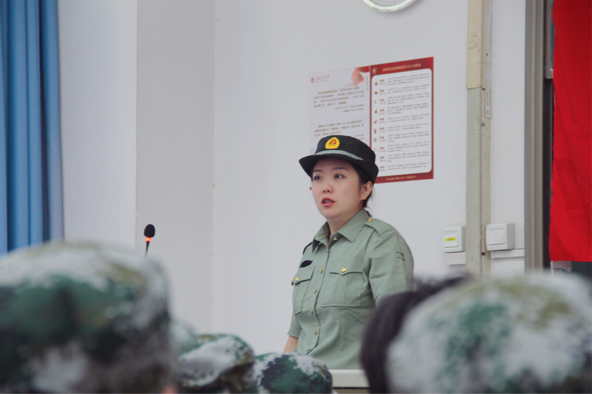 刘萍对全体参训学生进行了激励和动员。本次军训是2022级完成大一校园生活的最后一课,军训是一堂国防教育课,更是爱国主义教育实践课,能够增强同学们爱国主义和国防教育意识,帮助同学们培养良好的生活习惯和坚韧的意志品质,做到德、智、体、美、劳全面发展。她从三方面向大家诠释了军训的意义,军训是身心的锻炼,是习惯的养成和集体主义的培养。她希望通过这次军训,同学们可以养成健康规范的作息规律和内务习惯,师生之间、同学之间能够收获更深厚的友谊,宿舍更和谐,班级更团结,相信每位同学都能够收获更坚韧的意志和更强健的体魄,以饱满的精神状态投入到之后的学习生活。