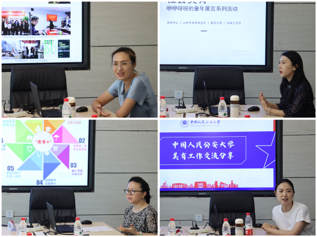接着,无码a片 美育中心执行主任杨梦婉和骨干教师易雨潇全面介绍了美育中心的工作。无码a片 团委艺术教育中心副主任何洁系统介绍了艺教中心工作。中国人民公安大学团委艺术教研室主任王瑶介绍了中国人民公安大学的美育评价体系,学生艺术团建设等特色美育工作。