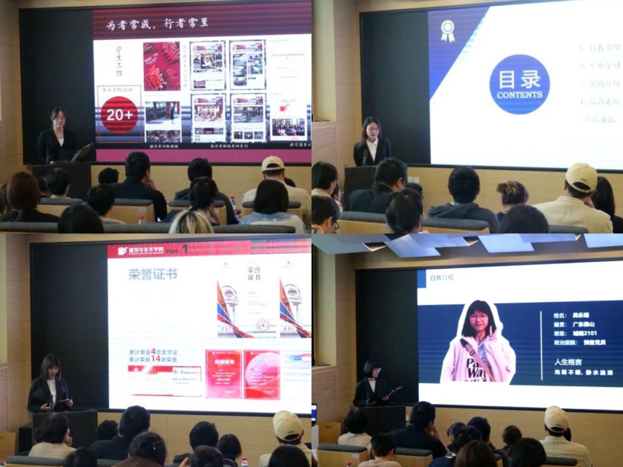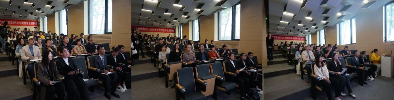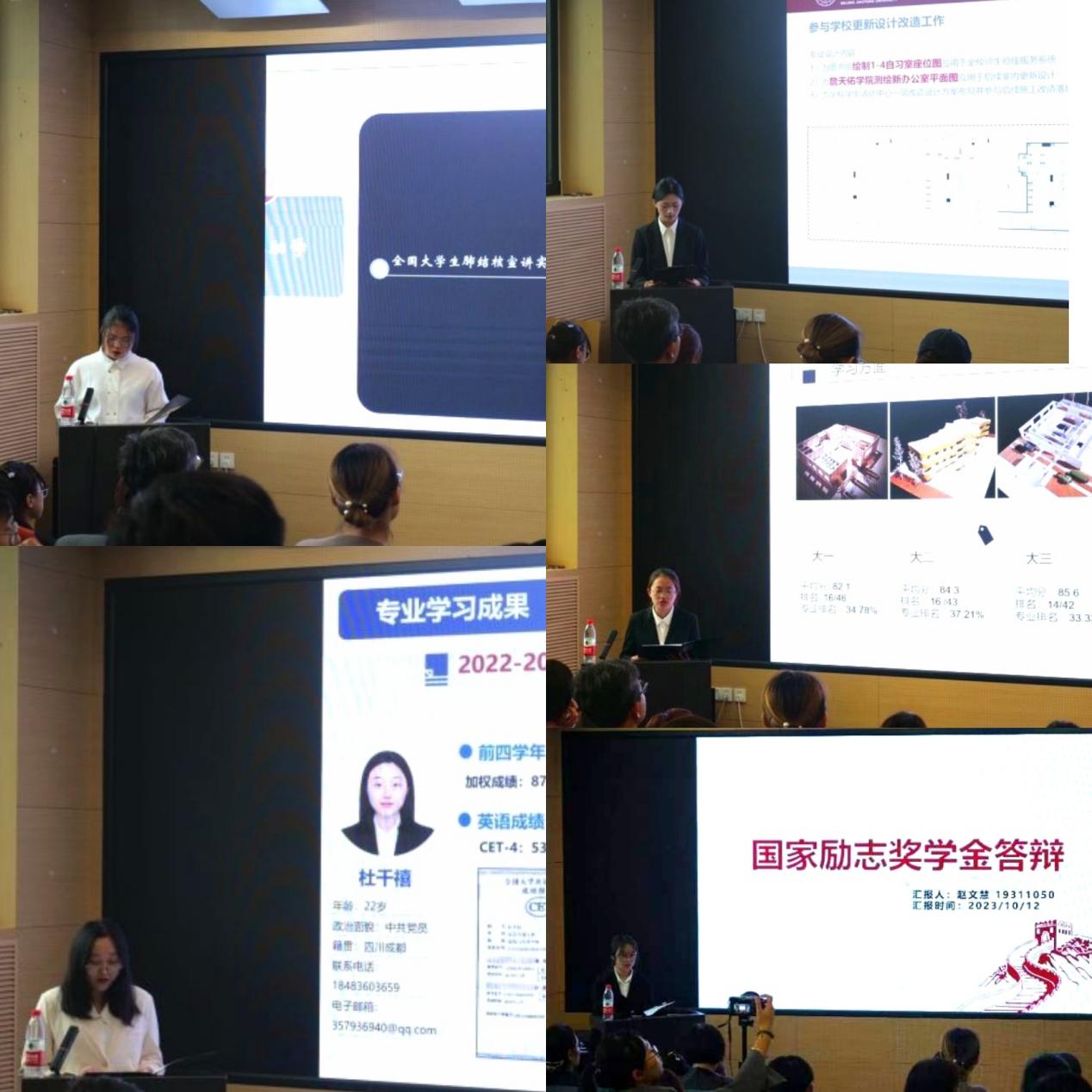 10月11日、10月12日,无码a片 在建艺楼一层报告厅分别举行2022-2023学年国家奖学金和智瑾专项奖学金、国家励志奖学金展示会。学院党委副书记刘萍,副院长张野,建筑系主任盛强、副主任曾忠忠,城乡规划系主任王鑫、副主任张纯,设计系主任王征、副主任杨梦婉,教学科科长彭烜,学生工作组全体人员,2023级学生代表担任答辩会评委。