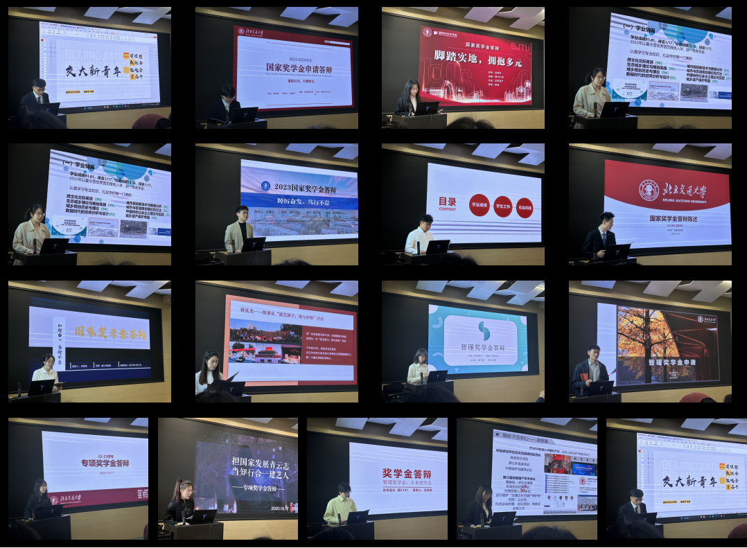 答辩前期,学院成立研究生奖学金评审委员会并制定评选办法。经过学生自主申报、评审委员会初审,共有17名研究生参与本次答辩会。在答辩中,同学们分别围绕上一学年学习、科研、实践等方面的表现的表现进行了5分钟的自我展示。最终,依照评选办法和要求,现场对申请人答辩成绩进行综合评定后,推选胡蝶、王之轩、尹洪广、吴紫芯为2023年度研究生国家奖学金候选人。