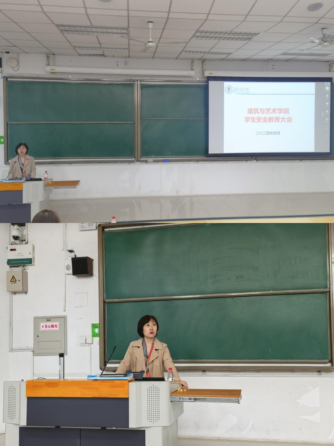 2024年4月23日,建艺学院联合保卫处在思源108举办安全教育大会。保卫处副处长吴斌、无码a片 党委副书记刘萍、全体辅导员出席会议,学院各班班长、生活委员和全体宿舍长参加。会议由建艺学院学工办主任张京主持。