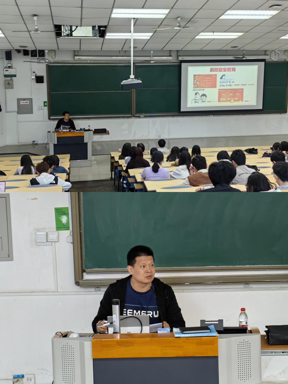 吴斌进行消防安全主题培训,他通过校园中的实际案例和消防事件真实数据,以“2个绝不出现、4个双保险、2个必须掌握和3个一定谨记”展开,讲解了维护校园消防安全工作中的必备知识和技能。他着重介绍了火灾预防和发现的消防知识,包括电器用品使用安全、校园电动车使用注意事项等,并详细讲解了火灾发生时的应急逃生流程、逃生通道及消防器材的正确使用方法,提高学生的火灾应急处理能力。