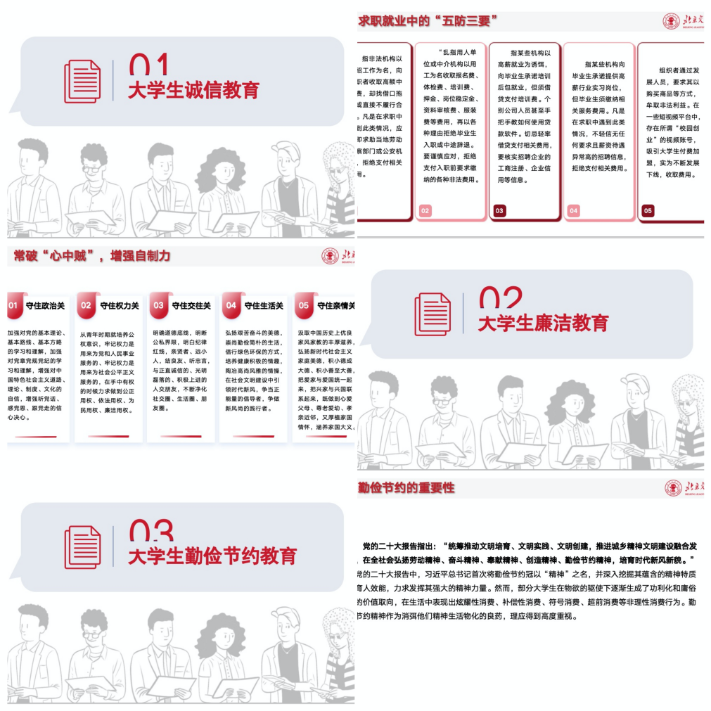 张京带领毕业生梳理了5-6月的重要事项节点,介绍了毕业生登记表的填写要求和注意事项,对学院即将开展的毕业生主题教育活动进行了介绍,鼓励毕业生积极参与,用实际行动感恩母校。会上,她对毕业生进行了诚信教育、廉洁教育、勤俭节约教育和安全教育,提醒毕业生在毕业的紧要关头,严以律己、学术诚信,勤俭节约,注意安全,在成长拨穗期扣好“第一扣”,在成长黄金期系好“安全带”,争做新时代好青年。