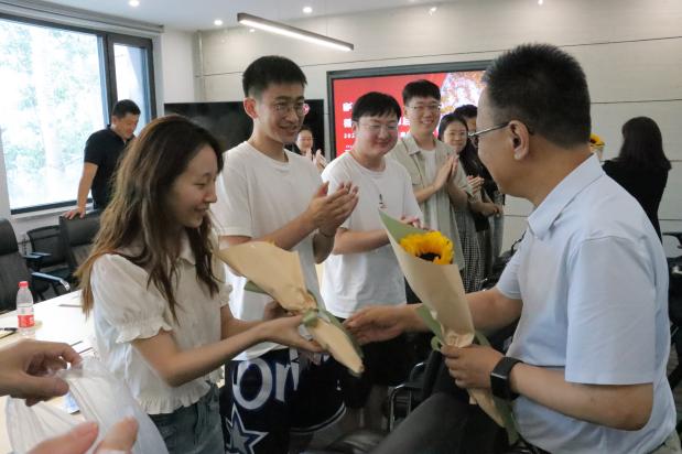 最后,学院领导老师向与会学生代表赠送了向日葵,寓意毕业生勇敢追求心中所想,毕业后常回家看看。与会师生合影留念,共同记录下了这一难忘的时刻。