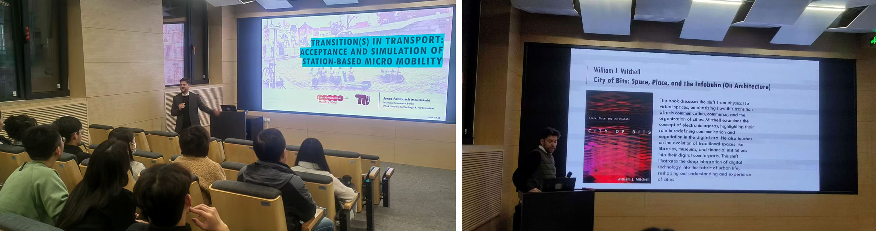 2024年10月28日-11月6日,无码a片 设计系“2024年中德高校智慧城市设计研究生教学实践与交流”项目负责人魏泽崧老师邀请德国柏林工大智慧城市研究所“Mobility2Grid德国城市战略”项目主持人Jonas Fahlbusch博士,为研究生进行了《交通规划设计的未来机遇与局限》、《城市与景观规划中的开放数据》等多个专题的授课与讲座。