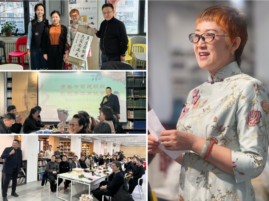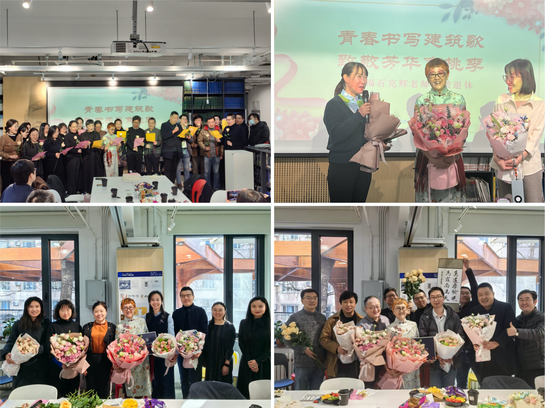 随着悠扬的旋律缓缓响起,石克辉老师职业生涯中的一个个精彩瞬间,以一张张照片为载体,生动展现在众人眼前。这些照片,如同时间的见证者,静静诉说着她在教育一线默默耕耘、几十年如一日的坚守与奉献。建筑系全体教师为石克辉老师带来合唱《春暖花开》,令在场的每一位都深感动容。