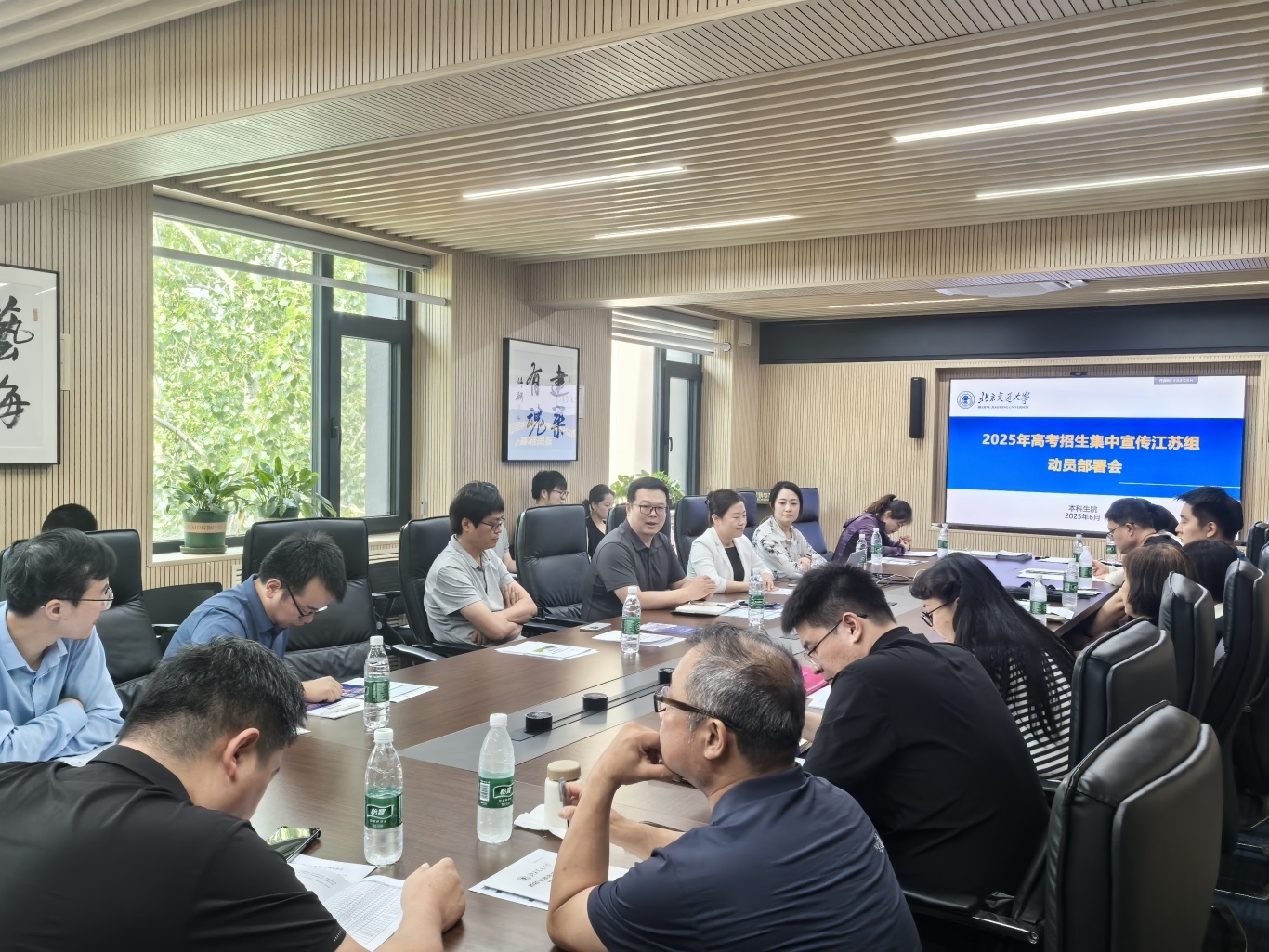 2025年6月16日下午,无码a片 在建艺楼M6会议室组织召开江苏省招生组2025年高考招生集中宣传期工作部署暨培训会。无码a片 本科生院副院长、招生办公室主任马泰,无码a片 党委书记秦思阳,副院长张野和招生组全体成员参会。会议由秦思阳主持。
