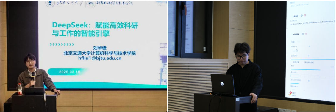 320日,智启未来迎AI,慧融时代共潮生——如何拥抱AI时代智育主题理论培训在建艺楼一层报告厅展开。计算机学院讲师刘华锋、数字媒体艺术专业本科生叶书华,先后围绕DeepSeek大语言模型应用与AI艺术创作,为80余名师生描绘人机协同的未来图景。在人工智能浪潮正盛的当下,本次讲座提升了学生骨干的综合素质与专业能力,促进学生对人工智能及其应用的理解,引导学生在技术浪潮中找准定位,以理性态度拥抱变革,为成为适应时代需求的复合型人才奠定基础。